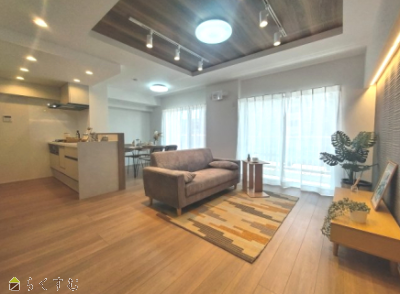 新規リノベーション物件!南東向きの明るく開放的な16.5帖の広々リビング。ご家族やお客様との会話も楽しめる対面キッチン。