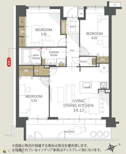 間取り 3LDK (洋室:6.0、5.9、5.8)