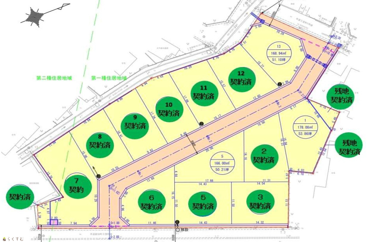 13区画の新規分譲地。角地残り1区画好評分譲中。
