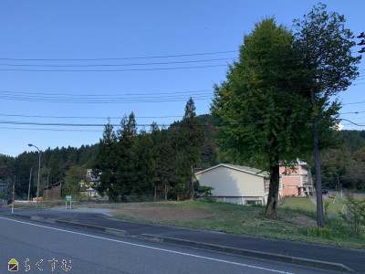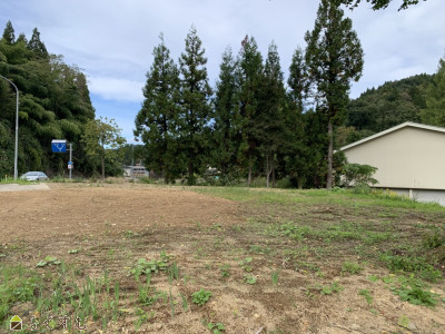 約132坪の広い敷地です!緑豊かでのどかな環境。物件裏には宿泊体験施設『月影の郷』があり、見晴らしも良く、前面道路は広い県道となっています。