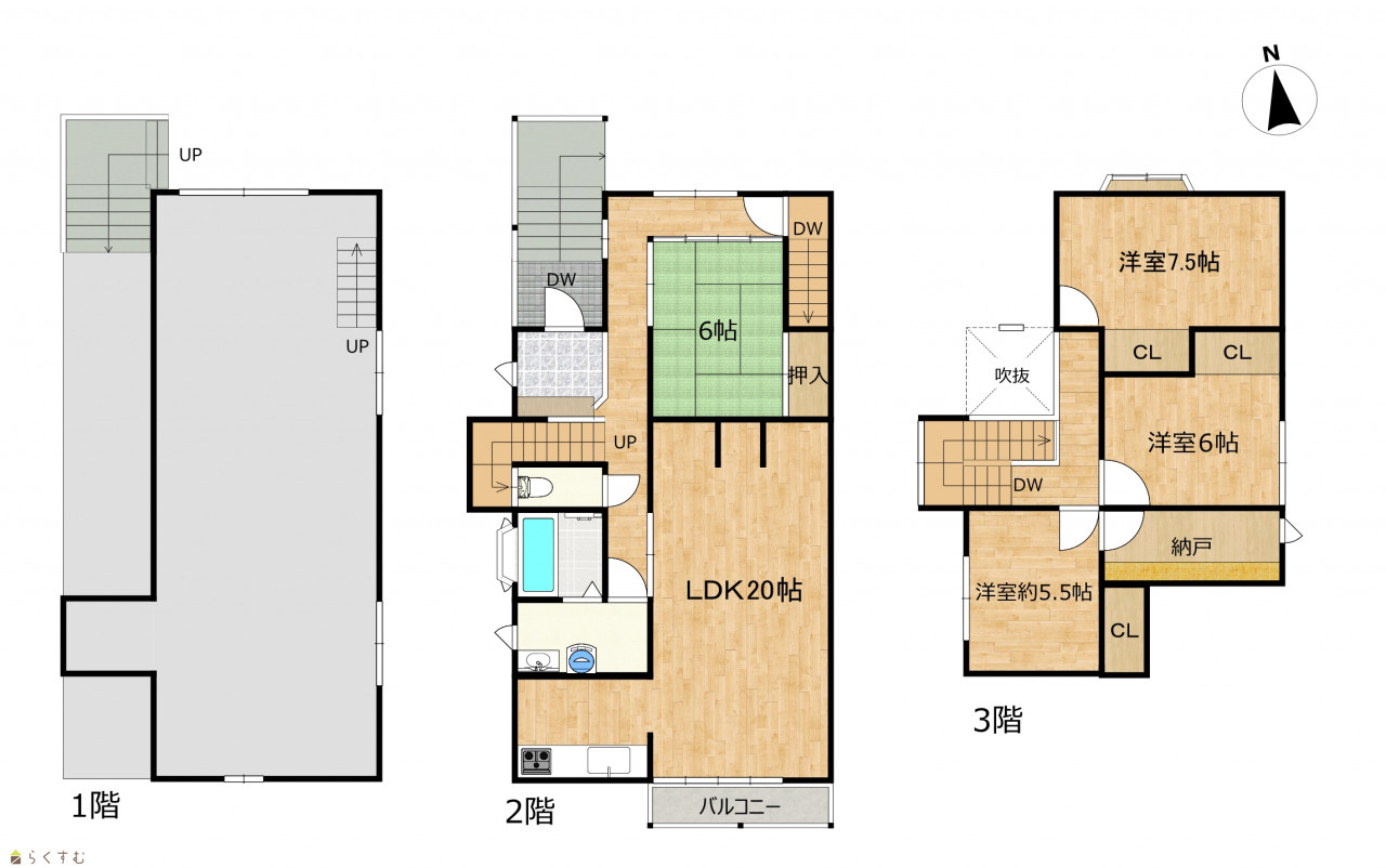 4LDK (和室:6畳) (洋室:7.5、6、5.5) LDK20 |
