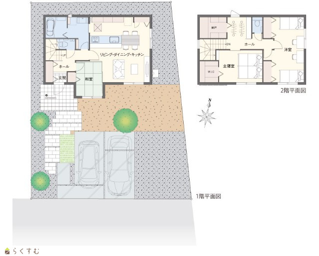 | ◆Point◆南側に大きな窓のある明るいリビング/個室にもなる4.5帖の和室/2階ホールに家族で使える収納やカウンターデスクあり | |||