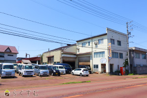 県道498号線(長岡中之島見附線)沿い、土地約301坪、工場約135坪、ほかに約17坪の倉庫有。現中古車販売店