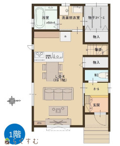 角地、日当り良好、スーパー近く、BELS/省エネ基準適合認定建物、フラット35S適合、LDK15畳以上、全室フローリング、駐車場2台以上、南向き、TVインターホン、複層ガラス、ディンプルキー、システムキッチン、IHクッキングヒーター、3口コンロ、追いだき機能付き、バス1坪以上、温水洗浄便座、シャワー付き洗面台、エアコン、24時間換気システム、省エネ給湯、高気密高断熱住宅、都市ガス、上水道、浄化槽、電気、ウォークインクローゼット、全居室収納あり、床下収納、シューズBOX、照明器具付き、即引き渡し可能