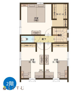 3LDK (洋室:8、6.7、6.7)、LDK15.1、物干しスペースあり