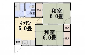 2DK (和室:6畳、6畳)、DK6