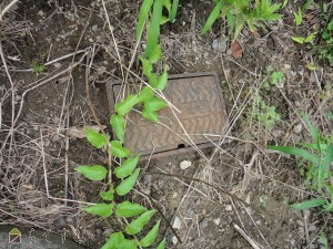 敷地内電柱と支線あり