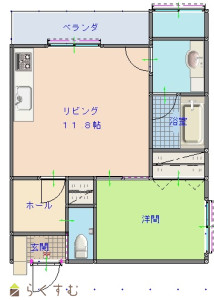 1LDK (洋室:5.8)、LDK11.8