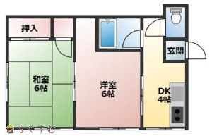 2DK (和室:6畳) (洋室:6)、DK