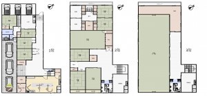 ・屋内縦列駐車3台、屋外並列駐車3台可能