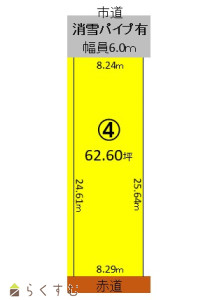 前道6m以上、南側道路面す、学校近く、スーパー近く、最寄り駅近く、分割可能、所有権、即引き渡し可、側溝、電気、都市ガス(宅地内)、上水道(宅地内)、下水道(宅地内)、前面道路融雪設備あり