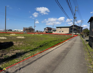 才津西町の445.38坪の広大な土地!左岸バイパスやフェニックス大橋に近く、古正寺エリアや川東方面へのアクセスが良好です。