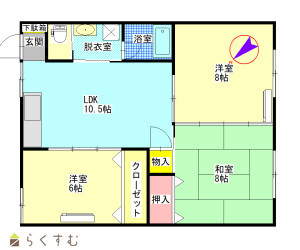 3LDK (和室:8畳) (洋室:8、6)、LDK10.5