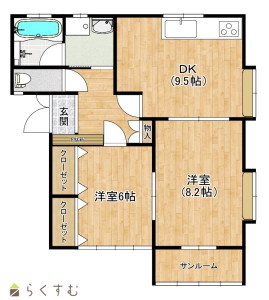 2DK (洋室:8.2、6)、DK9.5