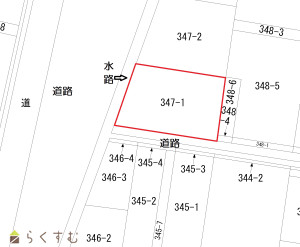 水道は南側道路は本管なし(延伸必要)のため、引込は西側道路からを推奨します。