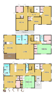 7LDK (和室:8.5畳、6畳) (洋室:8.5、8、11、6、6)、1階LDK9.6帖 2階LDK25.5帖