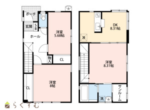 3DK (洋室:8.3、8、5.6)、DK8.3
