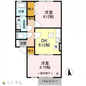 2DK (洋室:6.7、6.1)
