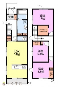 3LDK (洋室:7、6.5、5.4)