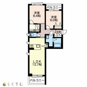 2LDK (洋室:6.4、6)、LDK12.7