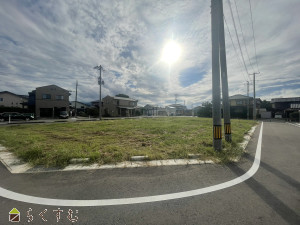 角地、整形地、前道6m以上、更地、スーパー近く、閑静な住宅街、建築条件なし、所有権、側溝、電気、都市ガス(宅地内)、上水道(宅地内)、下水道(宅地内)、住宅向け
