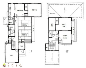 5DK (和室:8畳、8畳、6畳) (洋室:9、7.5)、DK10.5
