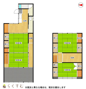 4DK (和室:8畳、8畳、6畳、6畳)、DK、入居するにあたりリフォーム工事が必要となります(買主負担)