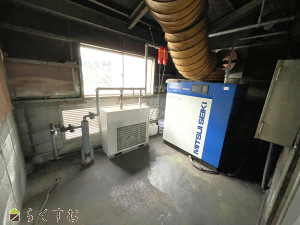 ・工場内には、コンプレッサー機器が設置してあり、工場内にエアー管が配備されております。