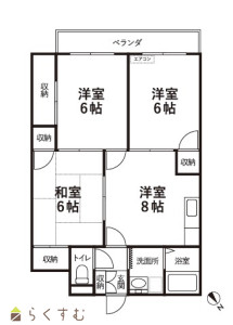 • 間取り 3DK (和室:6畳) (洋室:6、6)、DK8