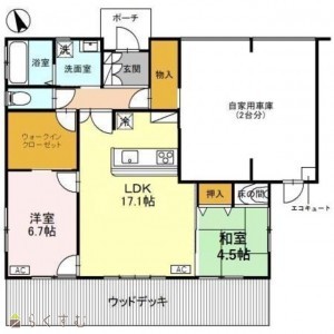 2LDK (和室:4.5畳) (洋室:6.7)