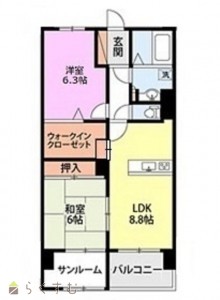 2LDK (和室:6畳) (洋室:6.3)