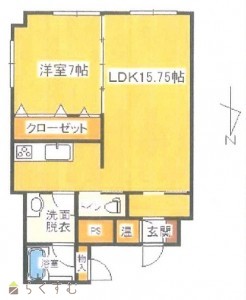 1LDK (洋室:7.5)、LDK15.75