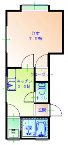 1DK (洋室:7.5)
