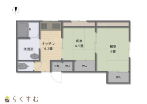 2K (和室:4.5畳、6畳)、K4.2、現況と異なる場合、現況優先とします。