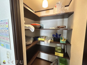買い置きの食品やキッチン用品をすっきり収納できるパントリー付