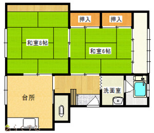 2DK (和室:8畳、6畳)、DK6
