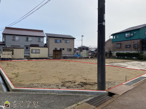 角地、前道6m以上、更地、閑静な住宅街、建築条件なし、所有権、即引き渡し可、側溝、都市ガス(前面道路)、下水道(前面道路)、電気、上水道(宅地内)、前面道路融雪設備あり、住宅向け
