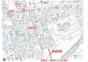 物件前面道路が連結する市道は団地内で行き止まりでした。団地の北側で東西結ぶ主要市道と南側の東西結ぶ主要県道を南北に結ぶ新道が開通し、便利になりました。