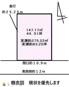 ◆実測では面積が約275.22㎡あります。