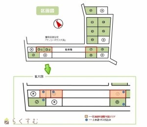 区画割調整可能エリア(区画3-1、3-2および7)を設置し、60坪を最低分譲面積として必要面積に合わせて面積を調整のうえ販売することが可能です。ご希望の際は、お問い合わせください。なお、区画の変更に伴う上水道およびガスの引込みなどについては、申込者の負担で工事をお願いします。