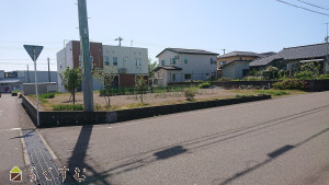 角地、整形地、前道6m以上、南側道路面す、更地、学校近く、スーパー近く、建築条件なし、所有権、側溝、下水道(前面道路)、都市ガス(宅地内)、上水道(宅地内)、住宅向け
