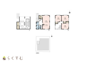 一階には2台分のインナーガレージと、タイヤやカー用品を収納できる物入が設けられています。2階は15.3帖のLDKで、家族との会話が弾む対面キッチンと1.8帖の納戸付きリビングがあります。3階には全居室収納付きの3部屋を配置し、ホールにはホスクリーン付きスペースを設け、雨天時でも安心して洗濯物を干せます。