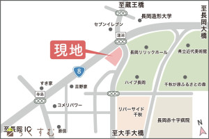駅:信越線 北長岡駅から徒歩49分、バス:ハイブ長岡から徒歩6分