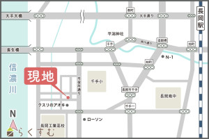 駅:信越線 長岡駅から徒歩23分、バス:幸町1丁目から徒歩3分