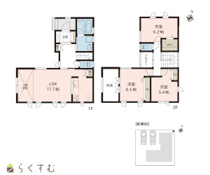 3LDK (洋室:6.5、6.2、5.4)、LDK17.7