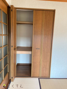 LDKは、長方形なのでキッチン側とリビング側でスペースを分けて使うこともできます。リビングから他の2部屋へは別々に出入り可能です。和室と洋室の間は収納となっていますので、プライベートも保たれます。