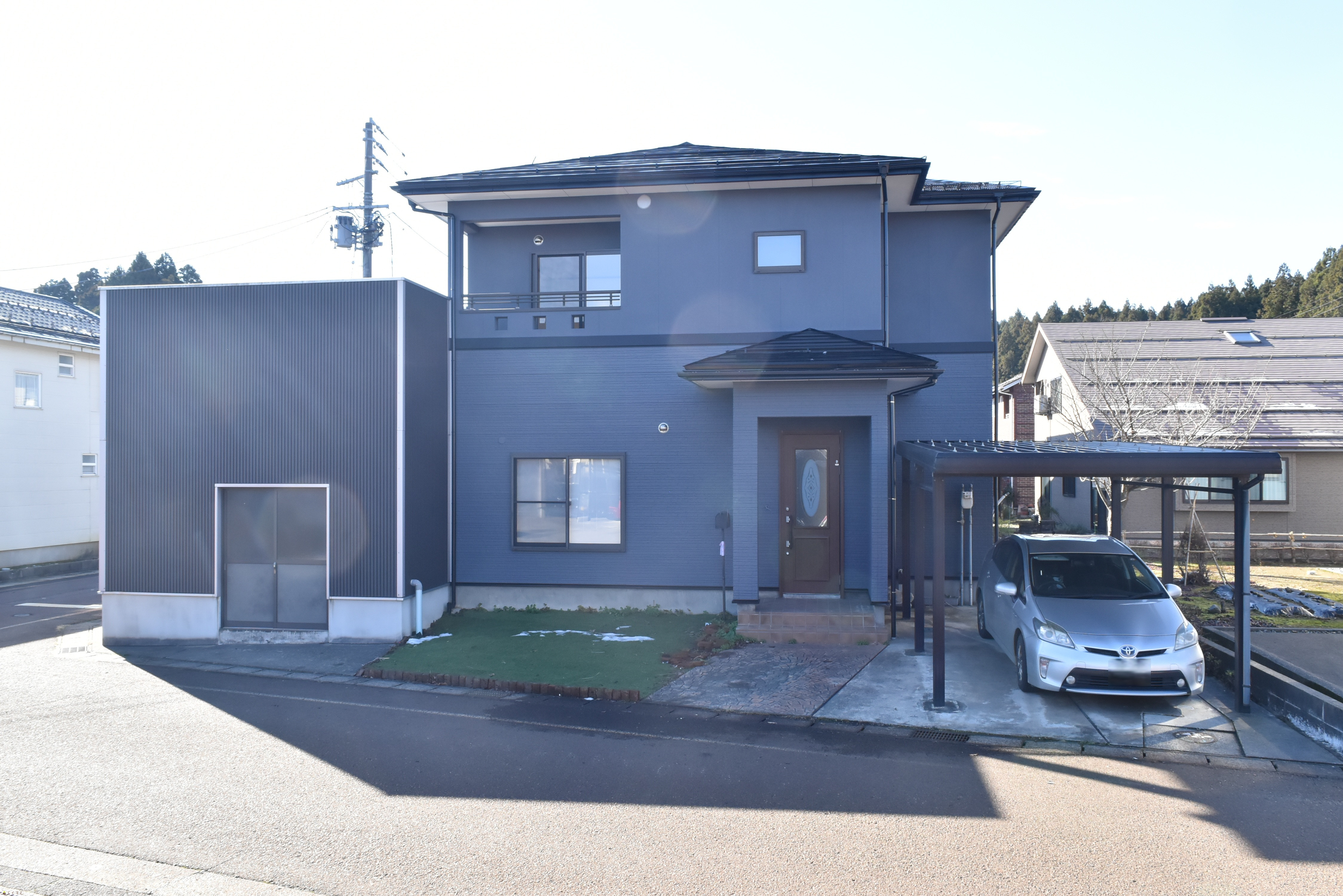 前面道路は幅6.5mで、消雪パイプ付きなので冬も安心です。