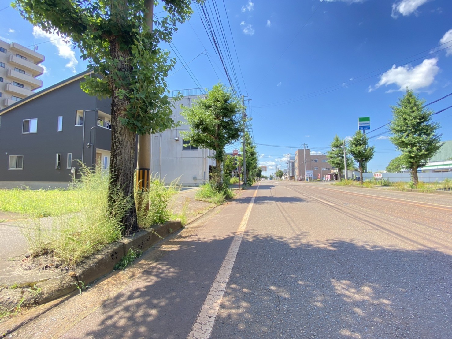 土地の前面には整備された歩道があり、お子様のいるご家庭も安心