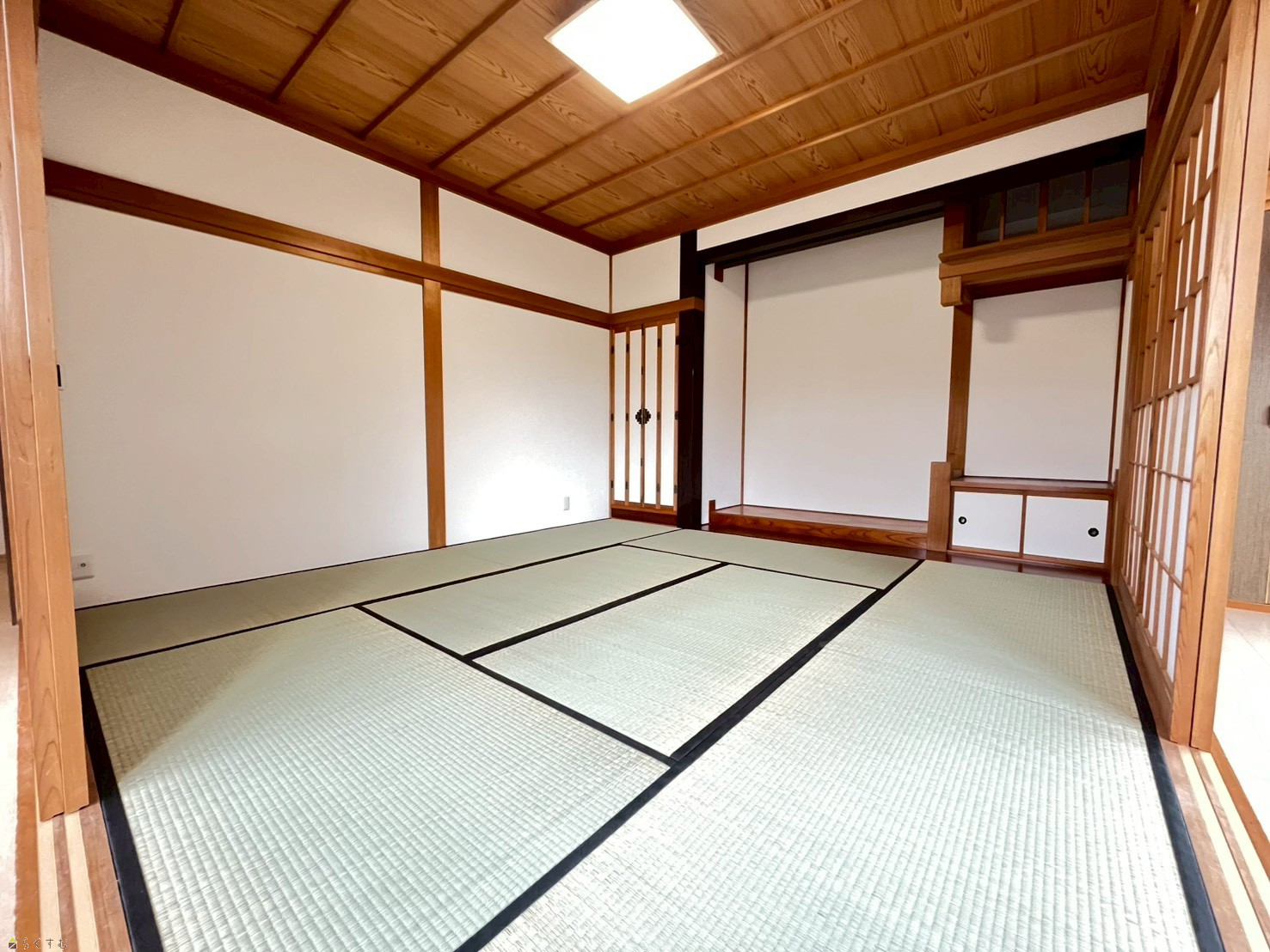 1階和室8帖 畳表替え・クロス張替え・照明交換を行いました。