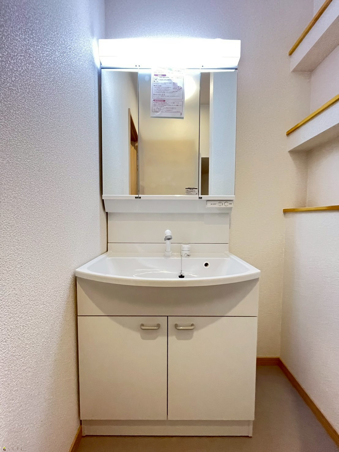 収納豊富な三面鏡の洗面台に新品交換♪